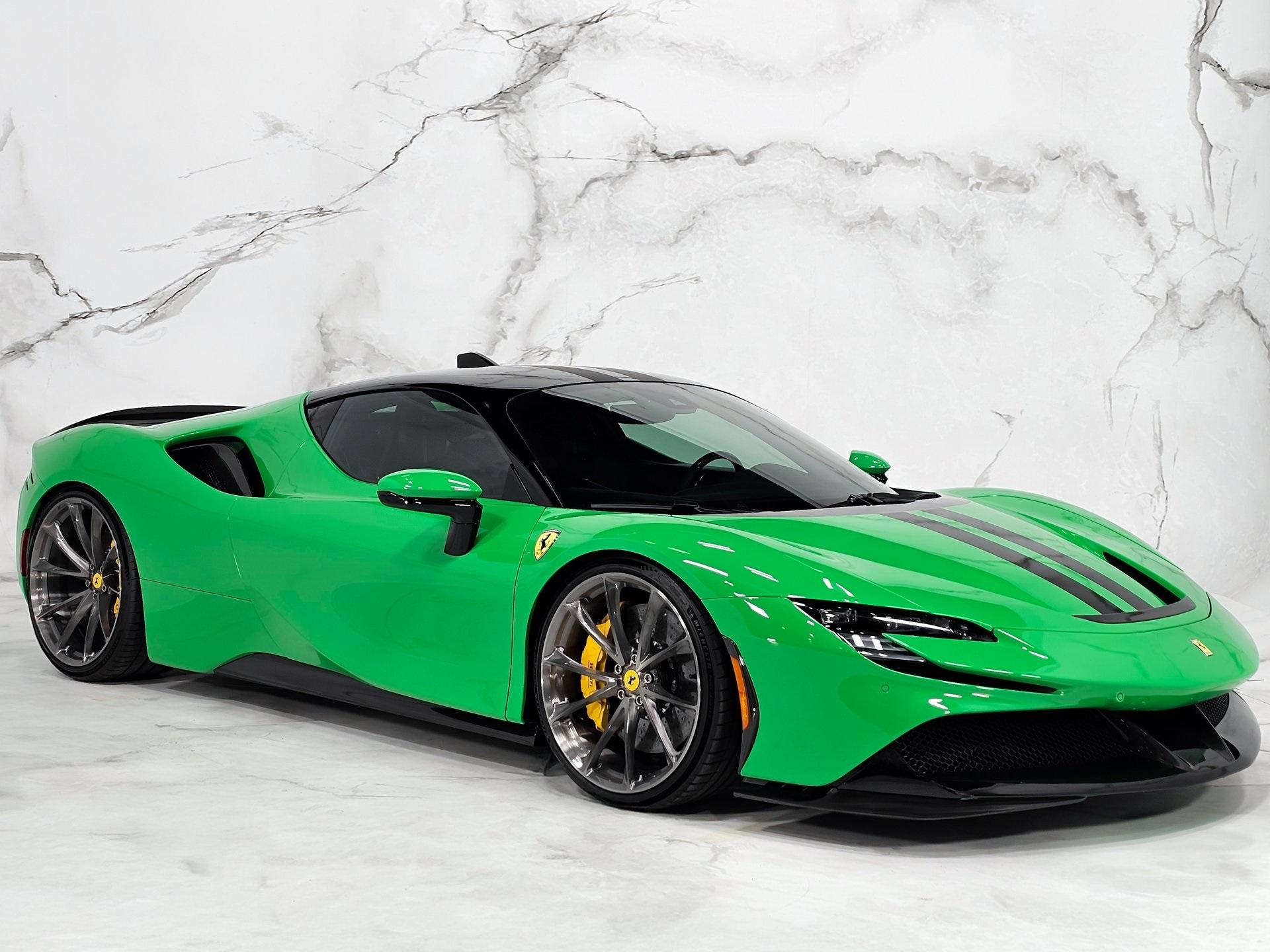 Internal Combustion Engine: A 4.0-liter, twin-turbocharged V8 engine sits mid-ship, producing 769 horsepower on its own—the highest output of any 8-cylinder engine in Ferrari's history.